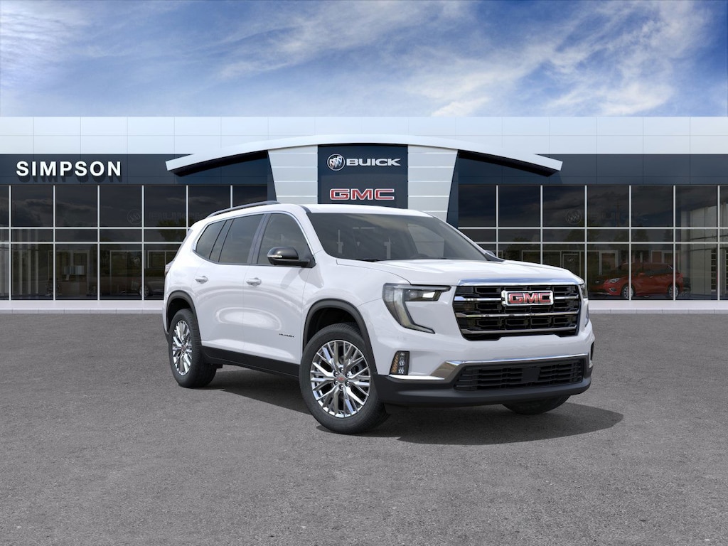 Summit White 2026 GMC Acadia 2.5L DOHC 20/27 City/Highway MPG